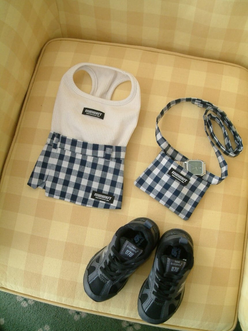 ヴィンテージチェックポイントミニポケットは外出する時、チェックシリーズはもちろん.チェックシリーズ以外のmininutの全てのコーディネートにカバンでレイヤードポイントを与えることが出来ます.ᐟ.ᐟ
