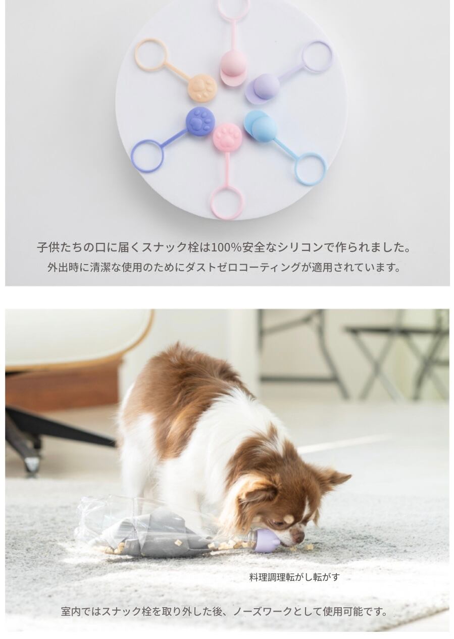 わんちゃんたちの口に触れるおやつ栓は100%安全なシリコンで作られました。