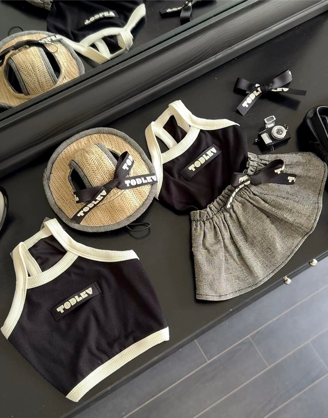 Toddlyのロゴテープを使用したリボンピンやブローチと合わせて、夏休みスタイルにぴったり.ᐟ.ᐟ