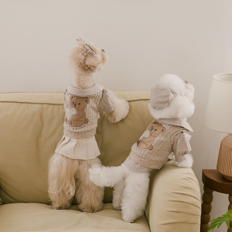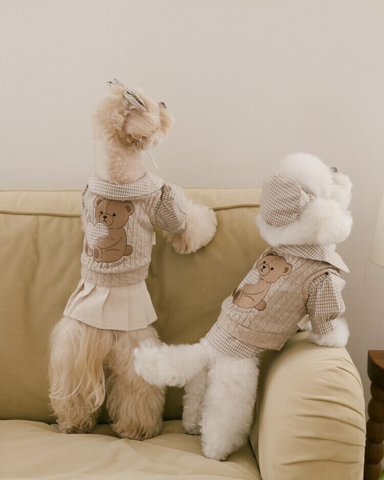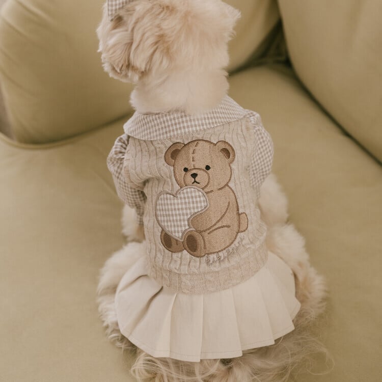 心地よいニットベストには、kiki&niniのシグネチャーである温かみのあるテディベアの刺繍とハートのアップリケが施され、今年のブラウニーコレクションをさらに特別なものにしています♡