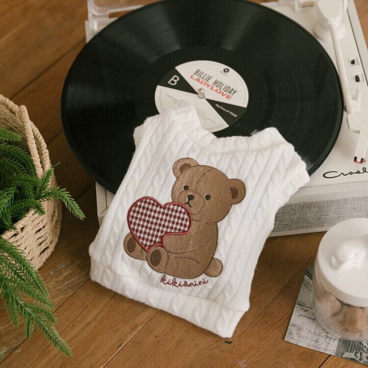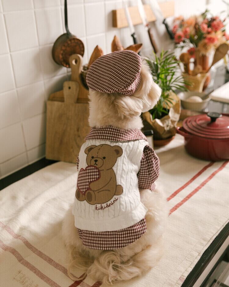 心地よいニットベストには、kiki&niniのシグネチャーである温かみのあるテディベアの刺繍とハートのアップリケが施され、今年のブラウニーコレクションをさらに特別なものにしています♡