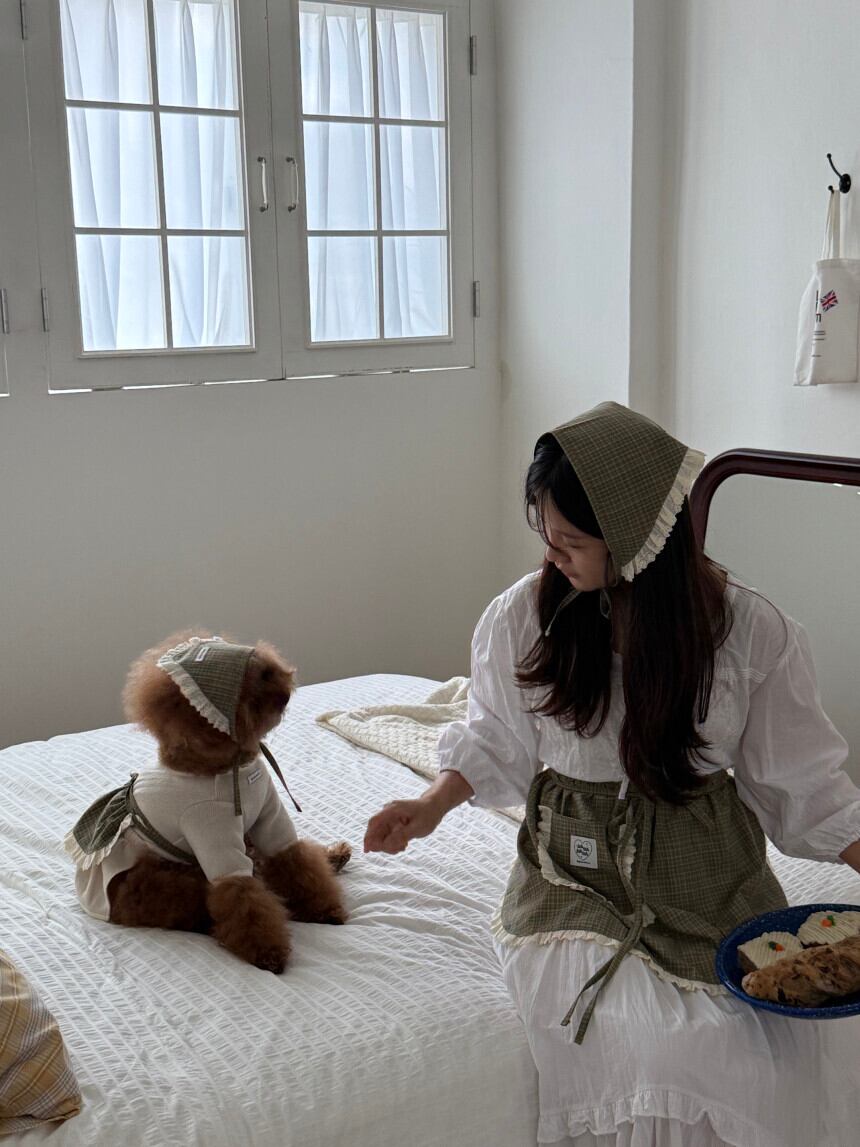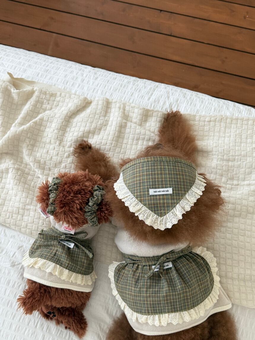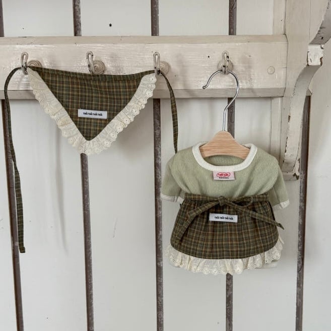 【 予約 】" tak!tak!tak!tak! " -Antique Check Series- Antique check apron layered skirt (5.Apron) (green)