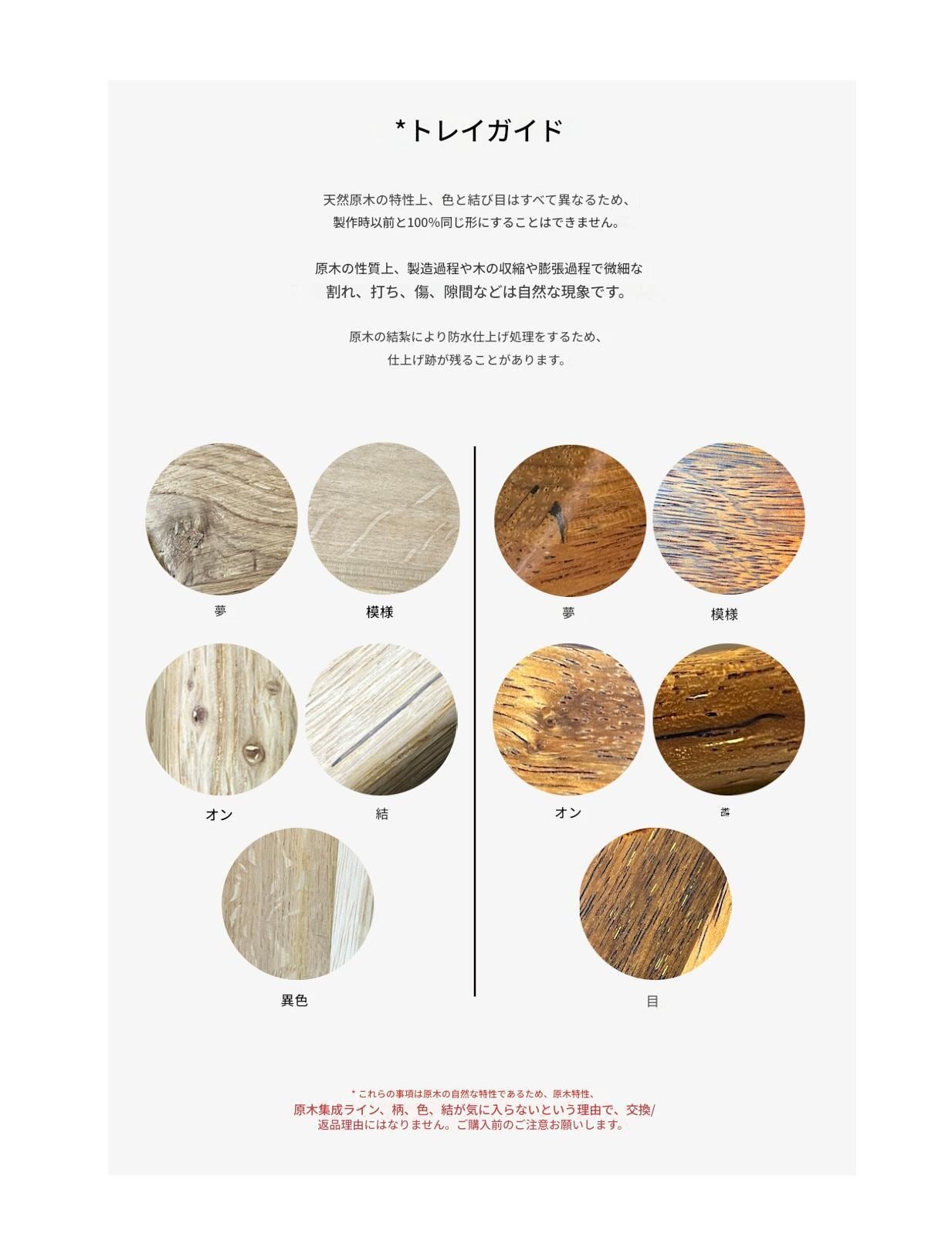 ウッドトレイの性質上、直射日光の当たる場所や湿気の多い場所はできるだけ避けてください。