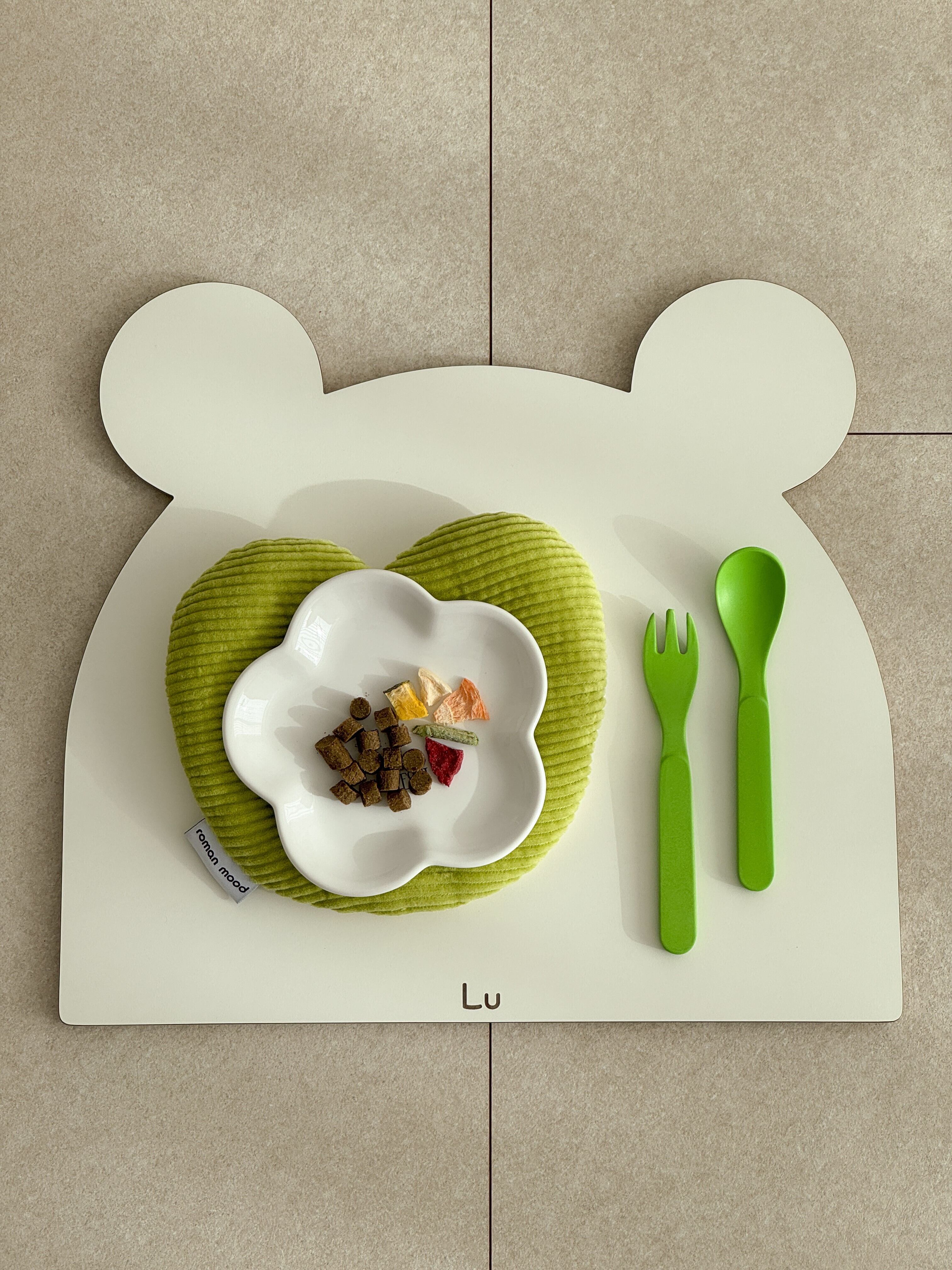 わんちゃんだけではなくご家族様とも一緒に使えるレタリングランチマットです:)