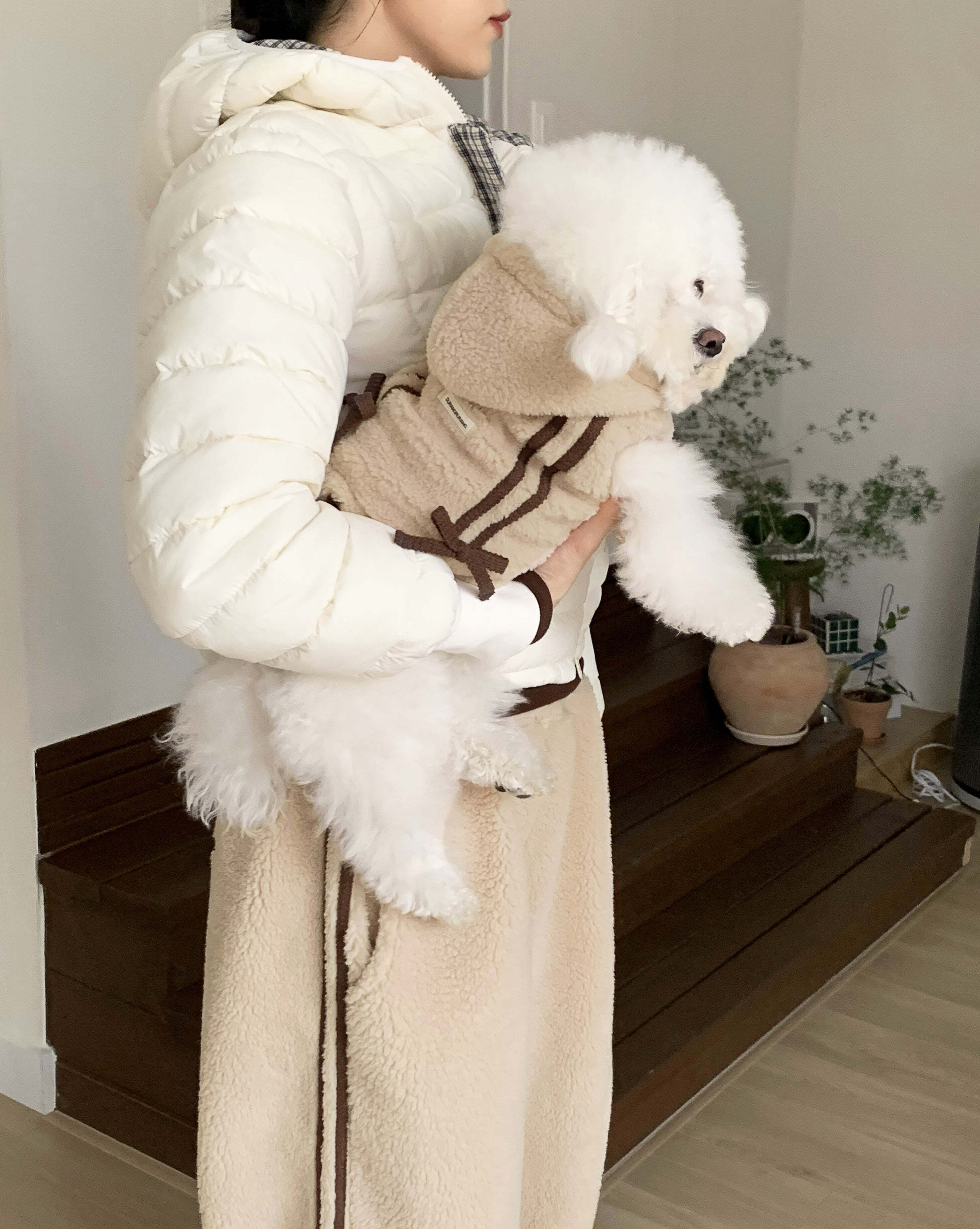 【 予約 】" DURANG RURANG " Ribbon BoA Hoodie Jumper (beige)
