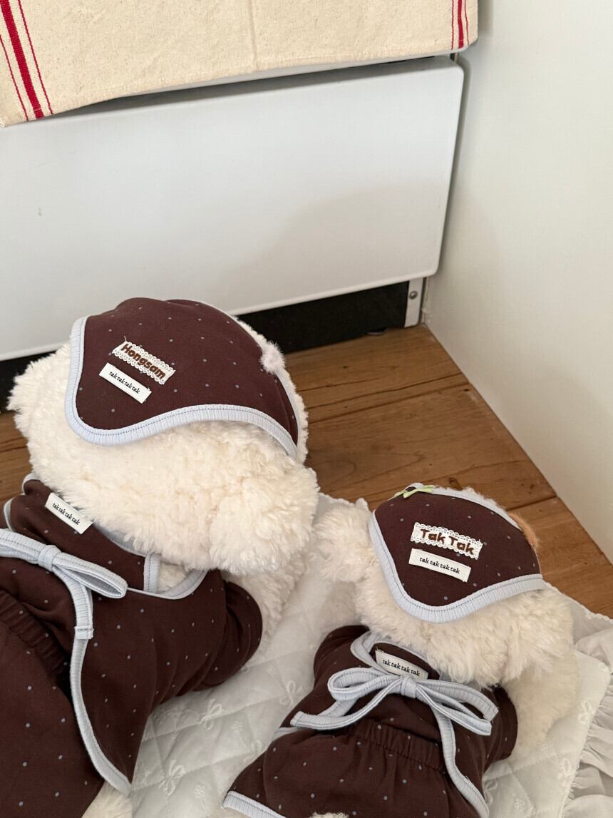 【 予約 】" tak!tak!tak!tak! " Mocha dot cardigan T-shirt/Onepiece set (choco)