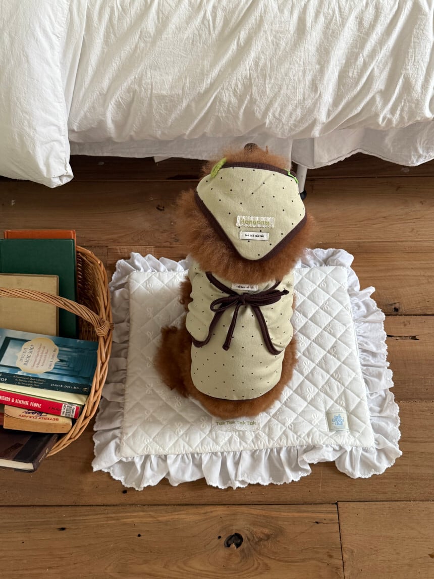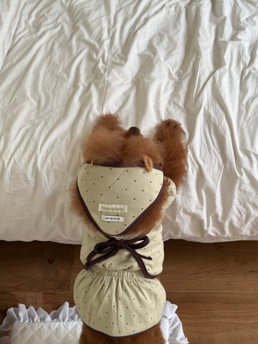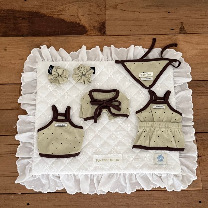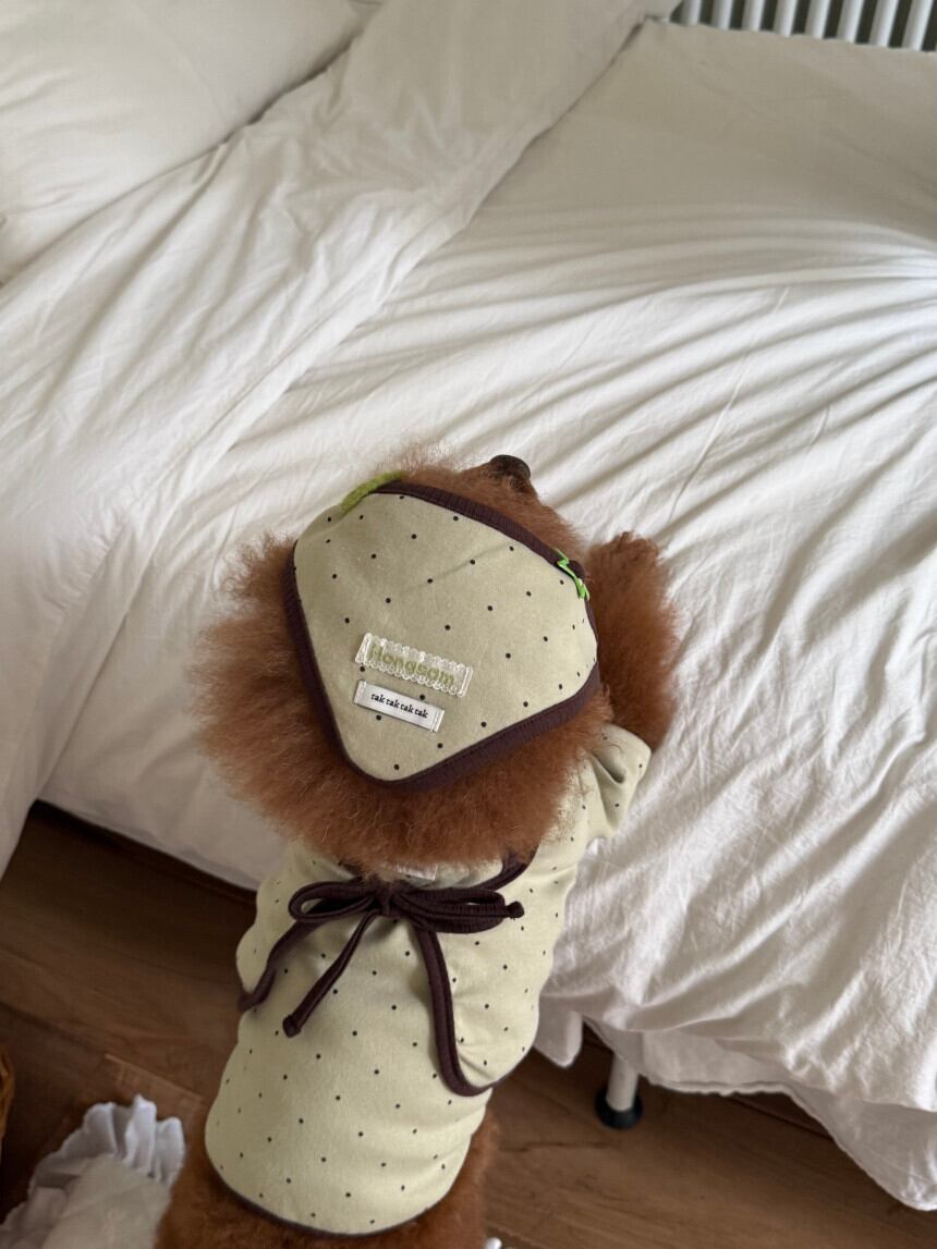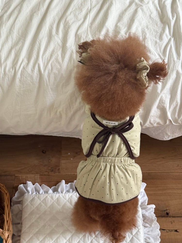 【 予約 】" tak!tak!tak!tak! " Mocha dot cardigan T-shirt/Onepiece set (olive)