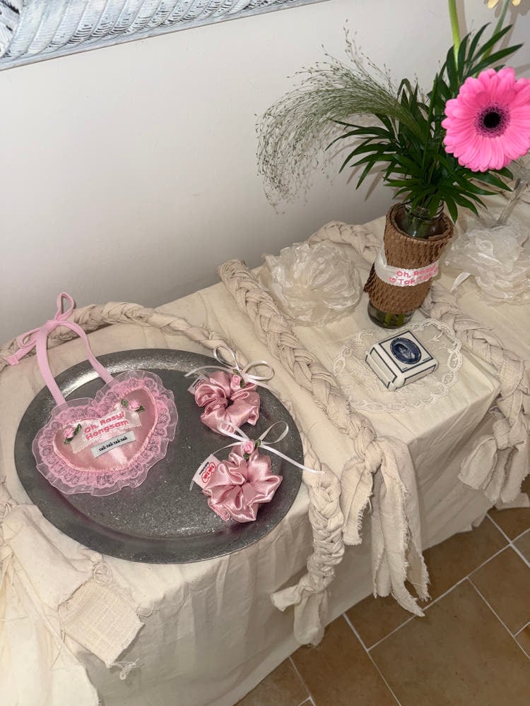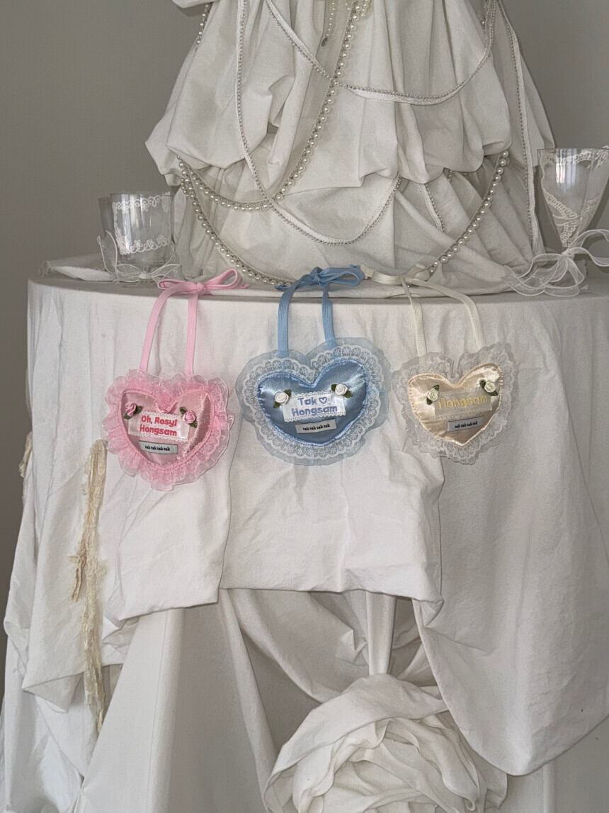 【 予約 】" tak!tak!tak!tak! " Oh,Rosy Series Satin Cushion Heart Bib (3color)