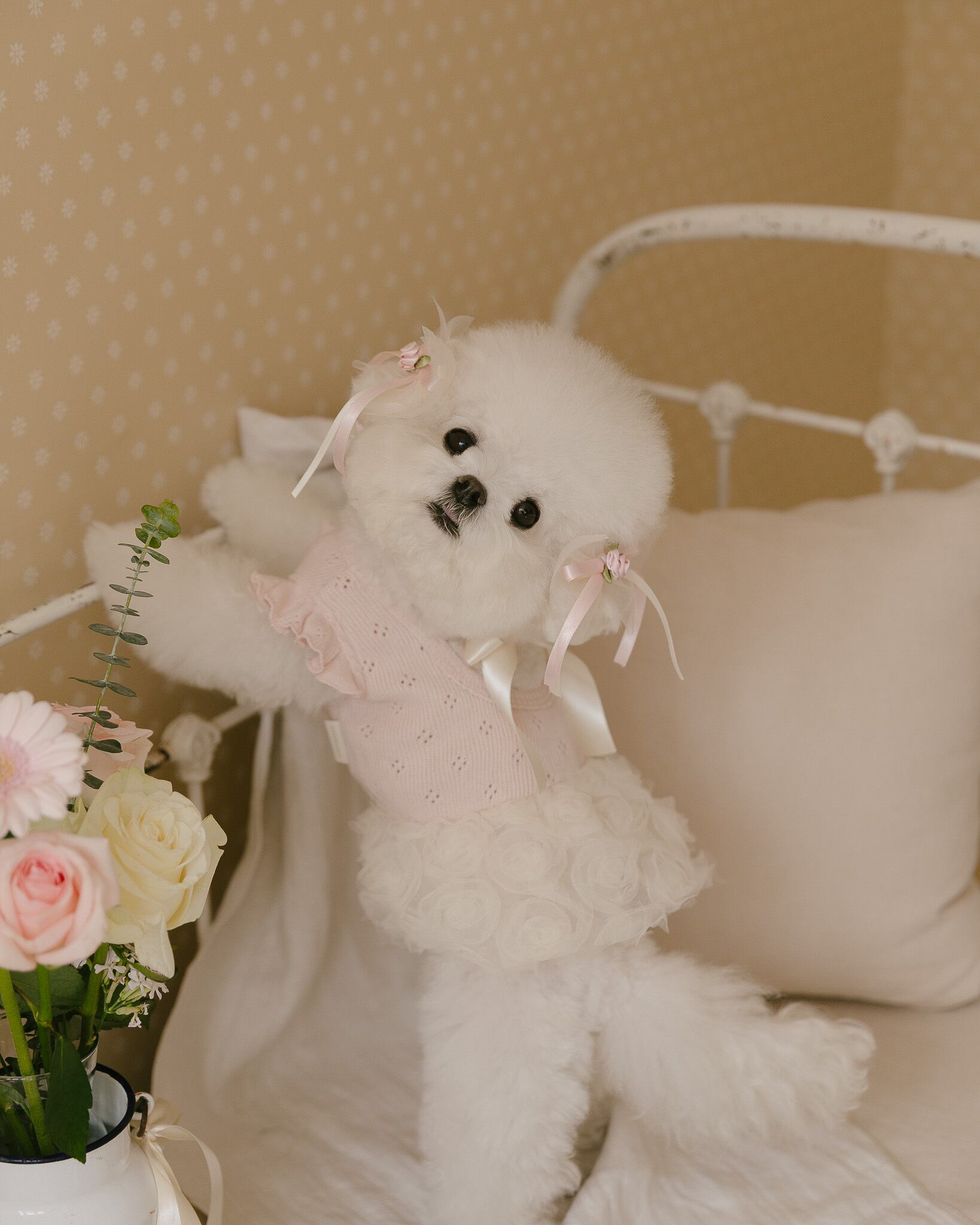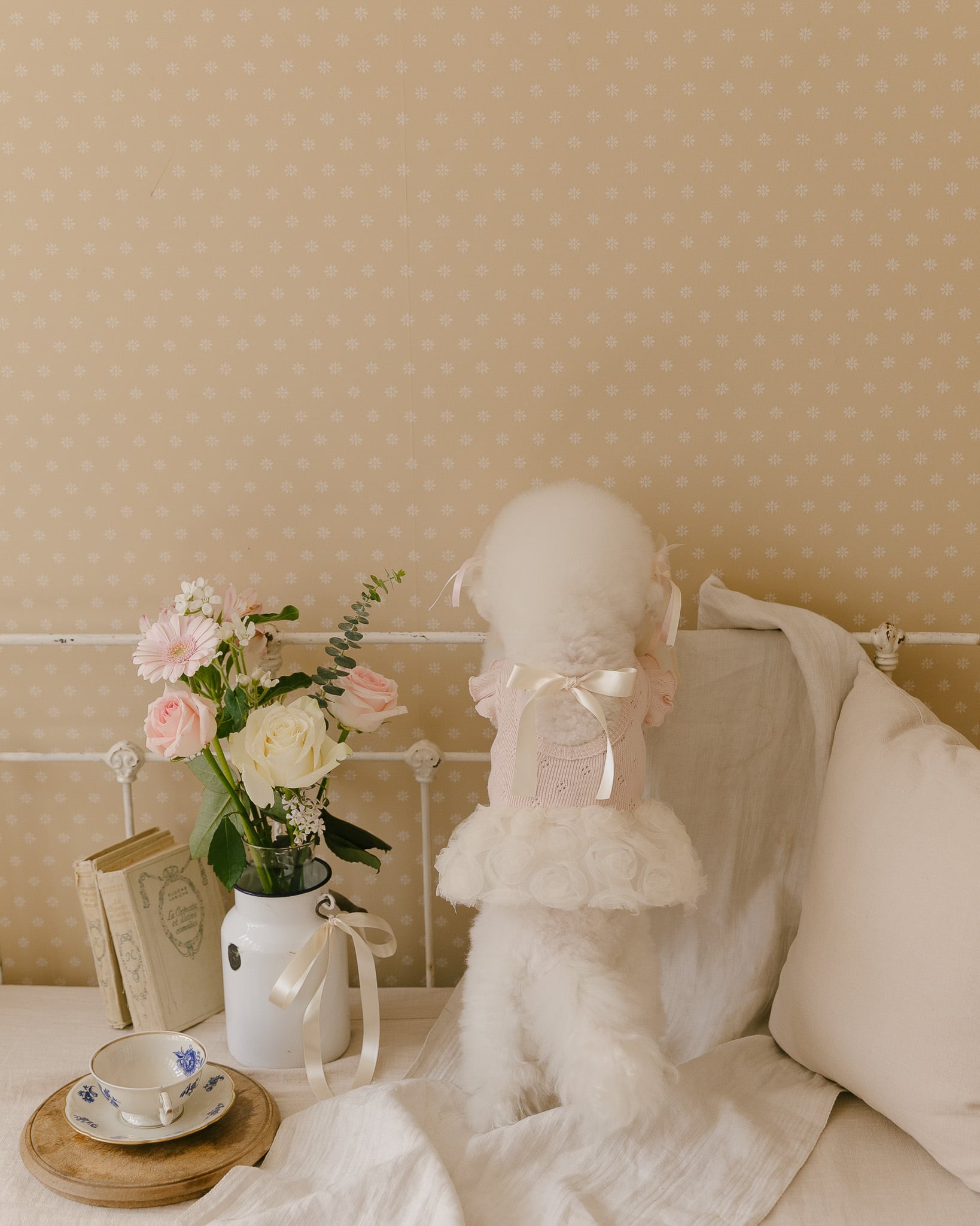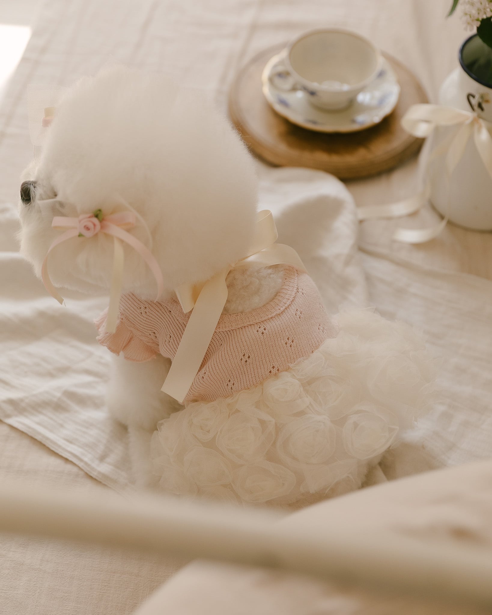 3層に重ねられたチュチュの上に加わったローズメッシュレースは、まるで花びらのように広がっていて、わんちゃんを歩く度に花びらが舞い散るようなとても愛らしい姿に出会うことになるでしょう♡