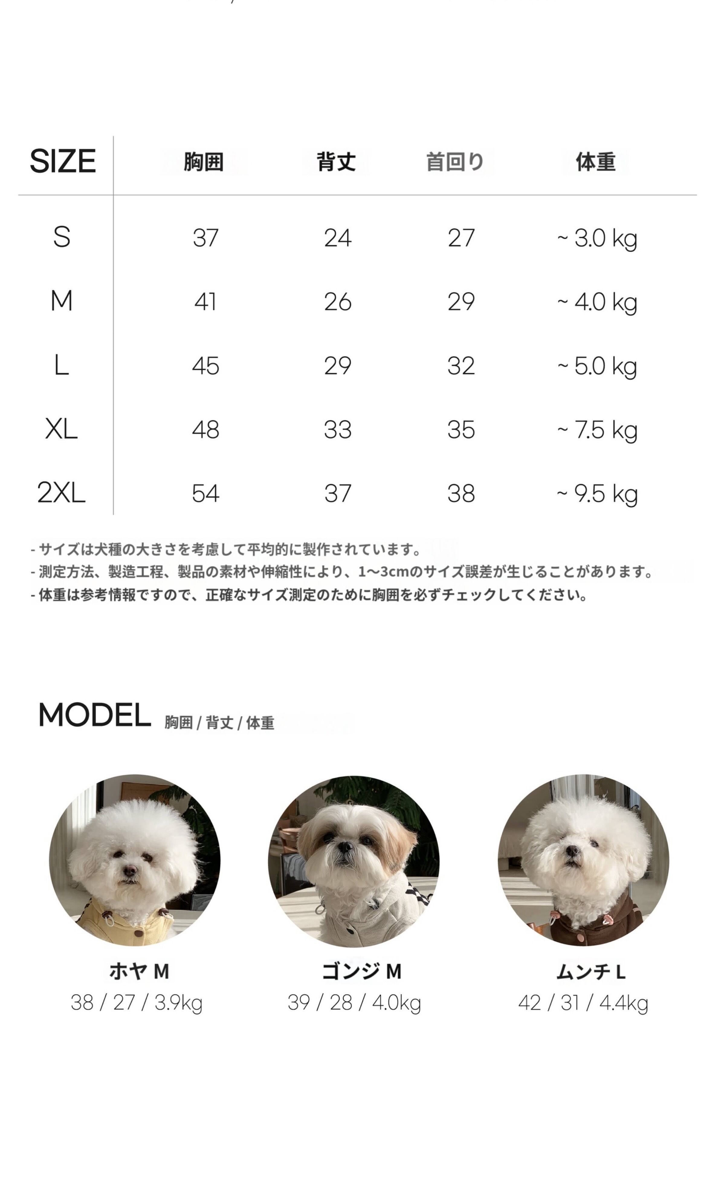 M 胸囲41cm 背丈26cm 首周り29cm 体重~4.0kg