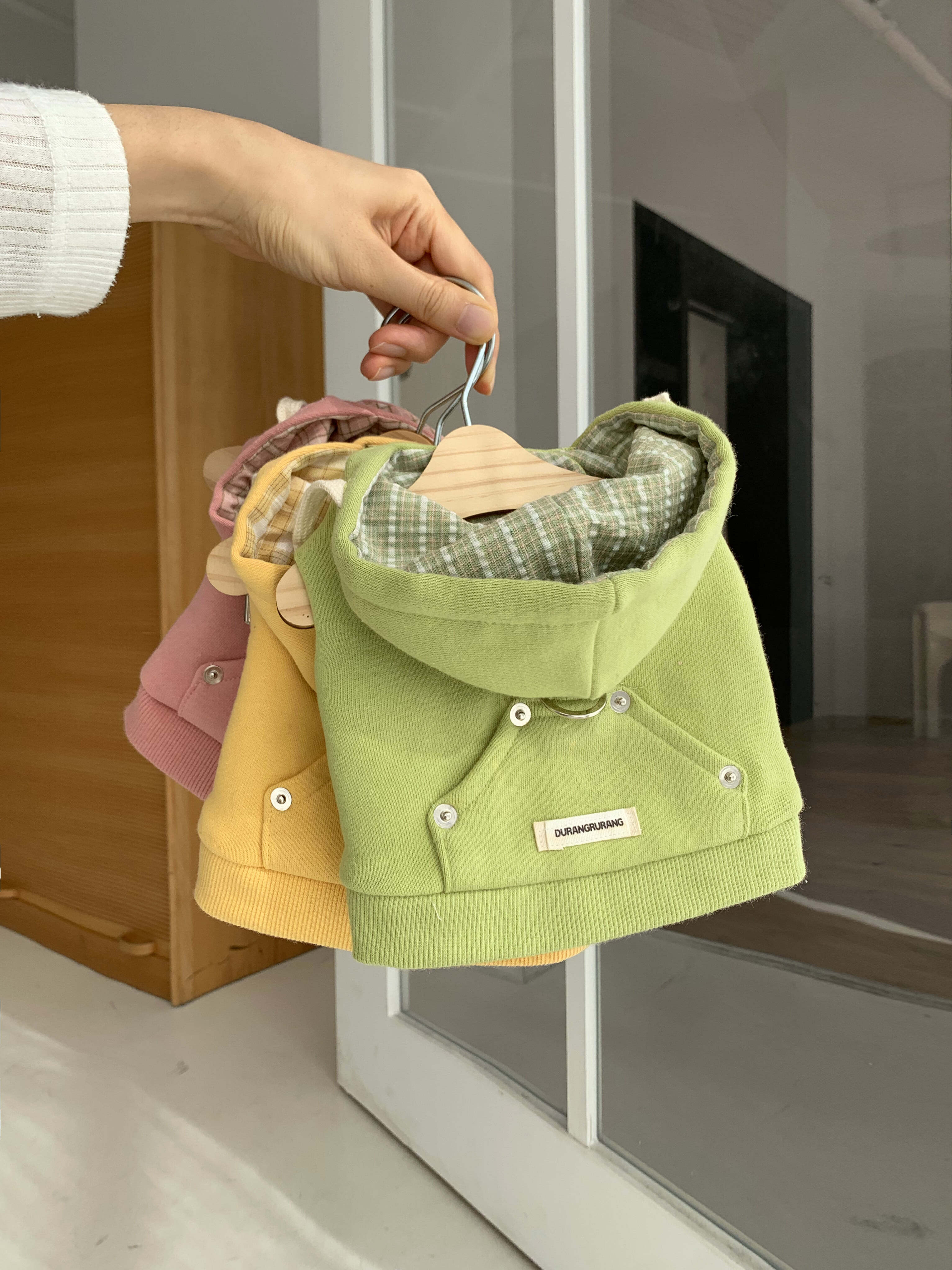 柔らかな素材で作られたフーディーハーネスです。