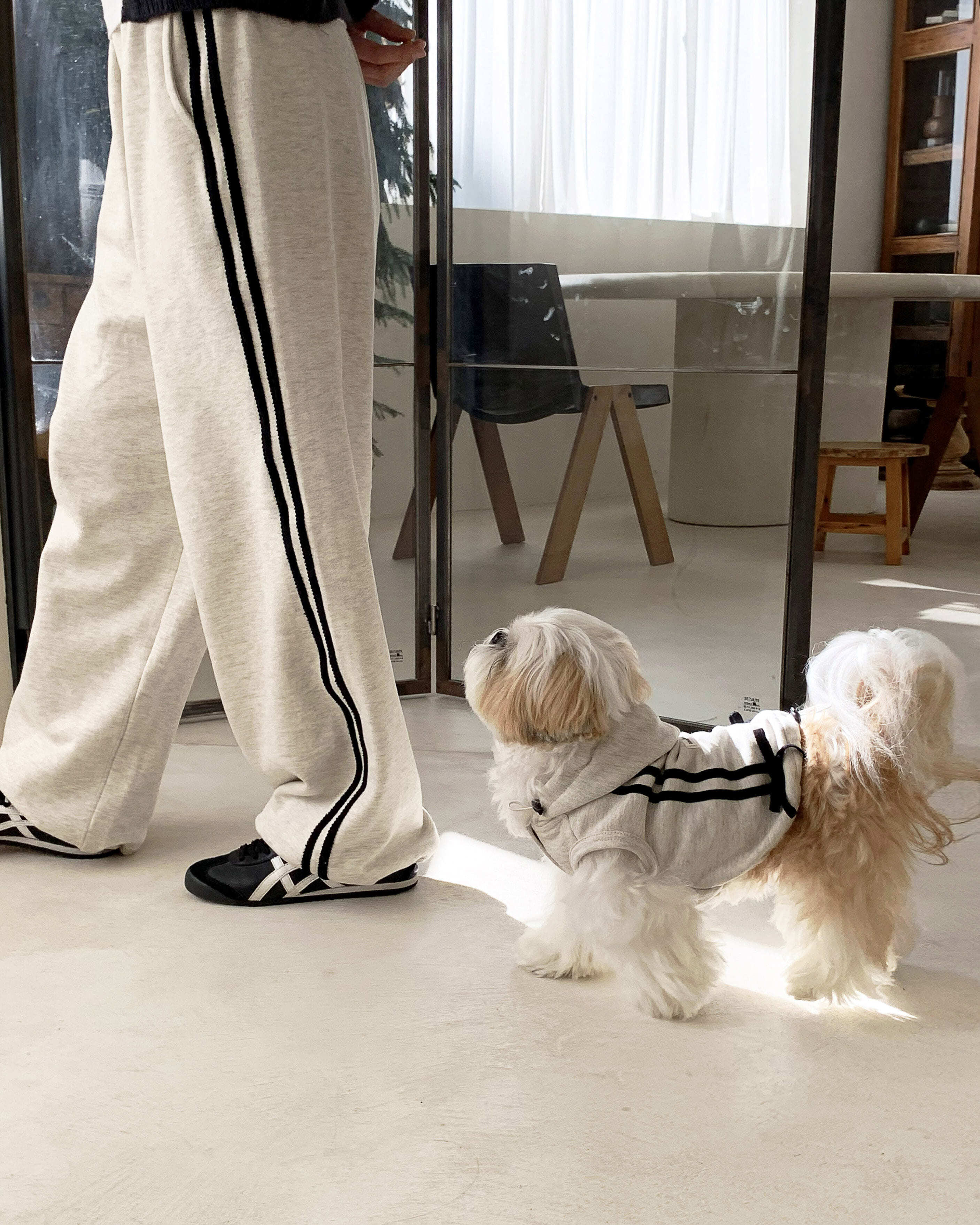 パンツカップルルックだから、コーデに取り入れやすく、センスよくわんちゃんと合わせて着ることができます♡