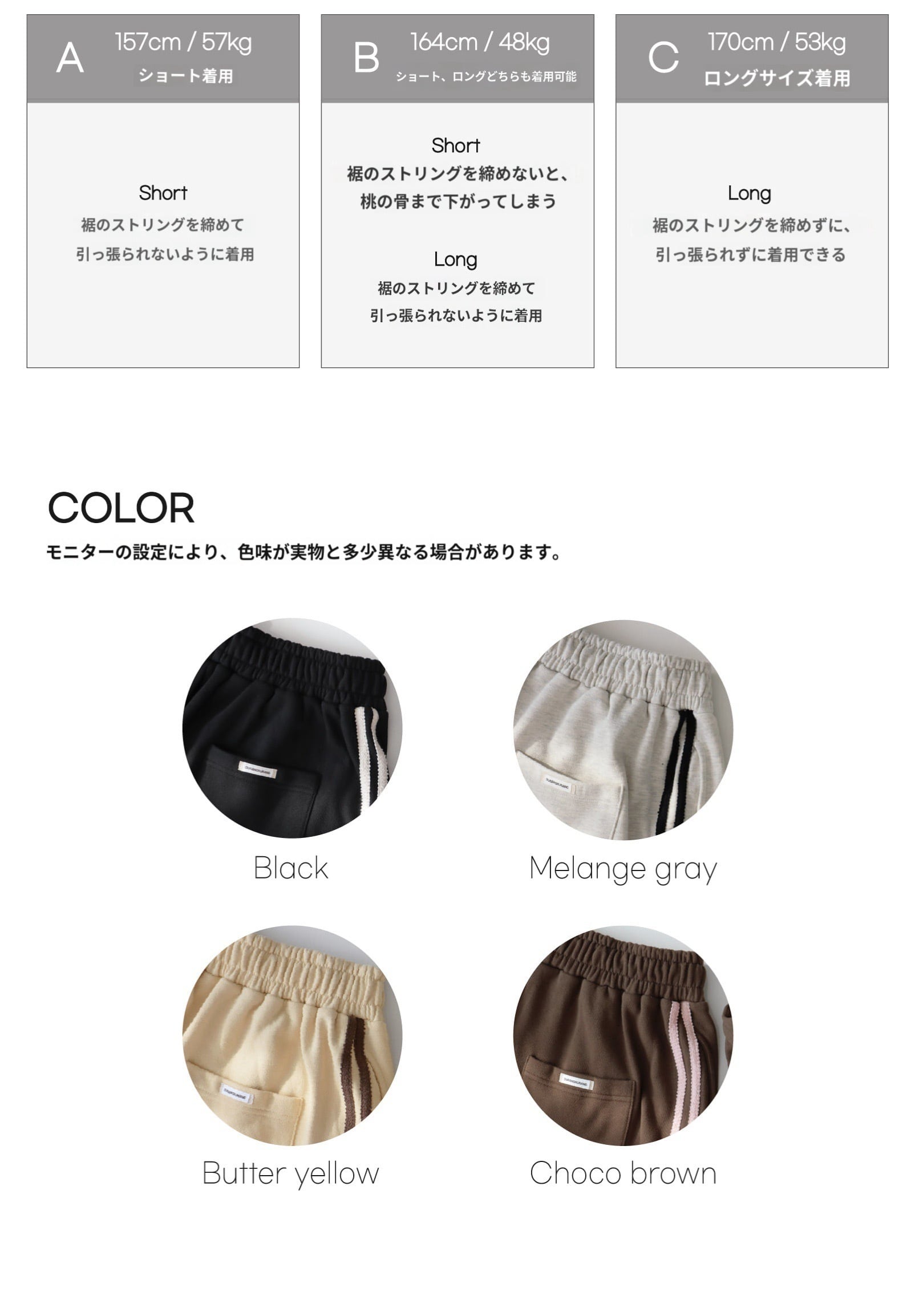 身長に応じてショート/ロングの2サイズからお選びください :)