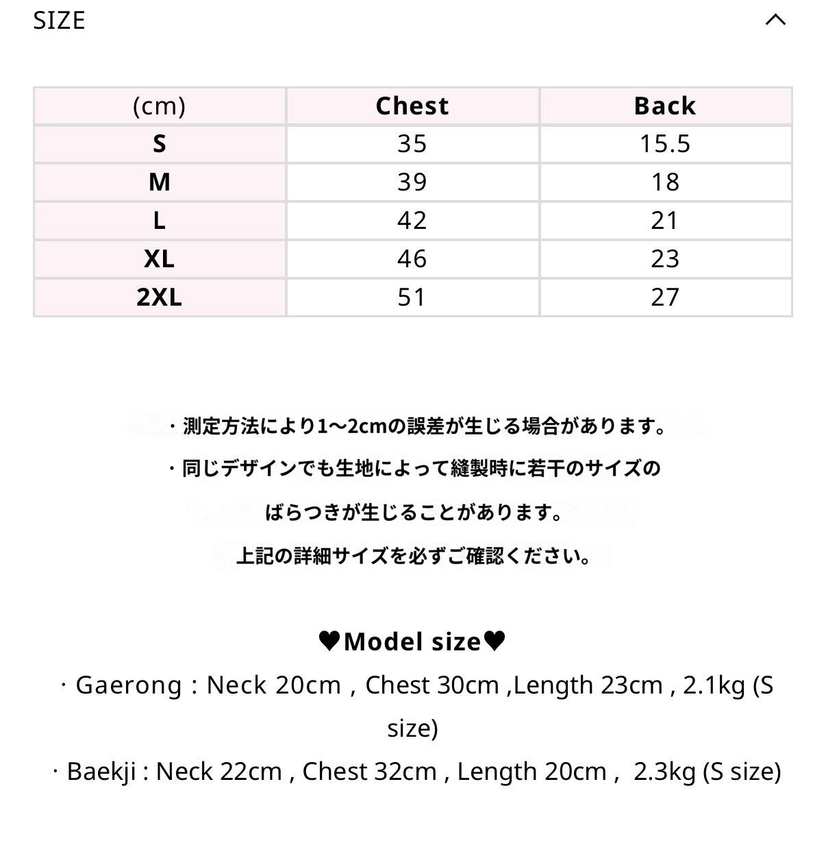 L 胸囲45cm 着丈20.5cm