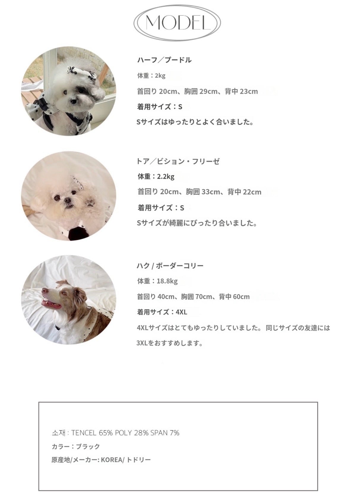 3XL 首周り43cm 胸囲65cm 着丈30cm