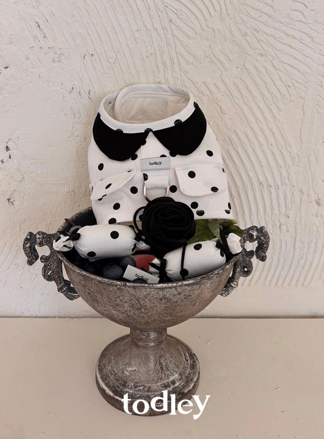 トレンディなドットプリントにクラシックなテーラリングディテールを加え、洗練されたムードを完成させたハーネス.ᐟ.ᐟ